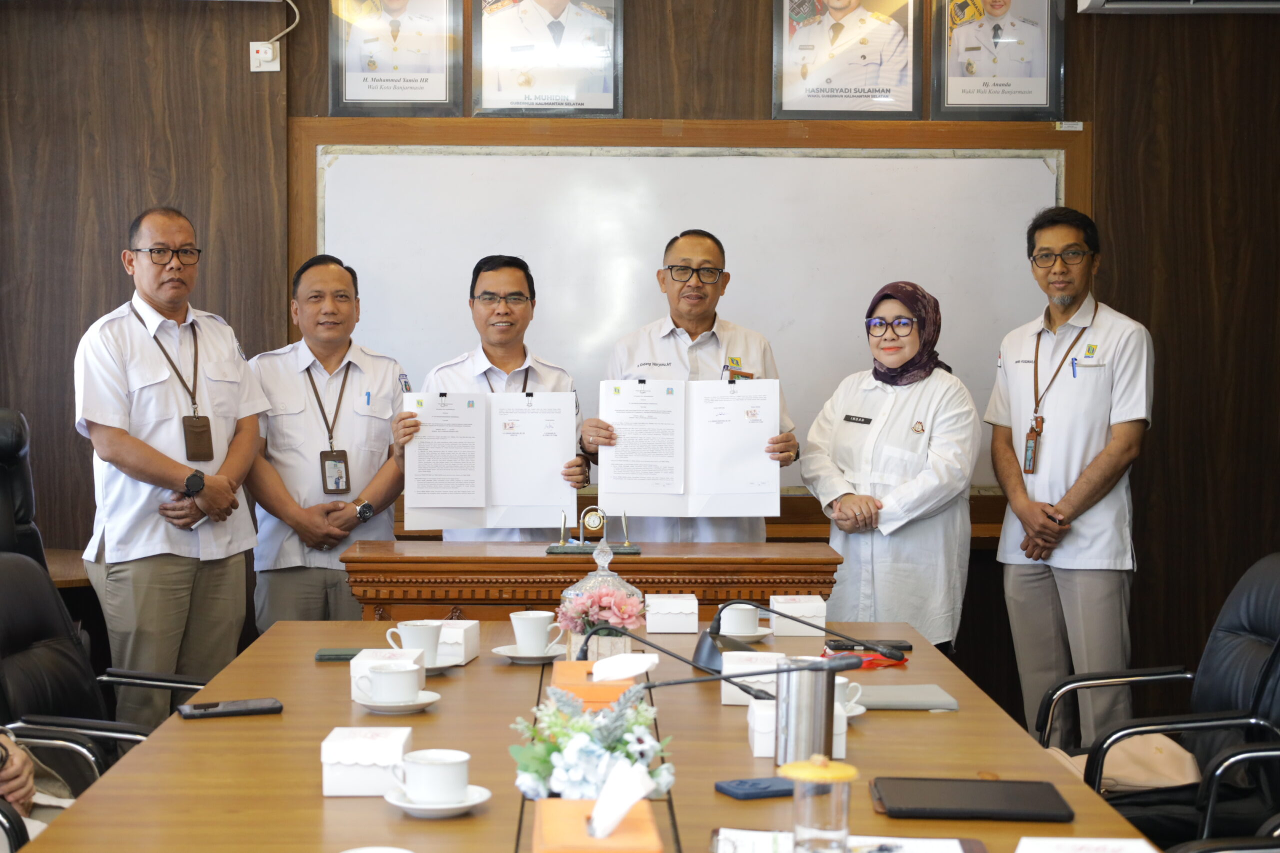 HABARPAM.COM, BANJARMASIN — PT. Air Minum Bandarmasih tanda tangani MoU atau Perjanjian Kerja Sama dengan Perumda PALD, di Ruang Rapat Direktur Utama PT AM Bandarmasih, Rabu (15/10).