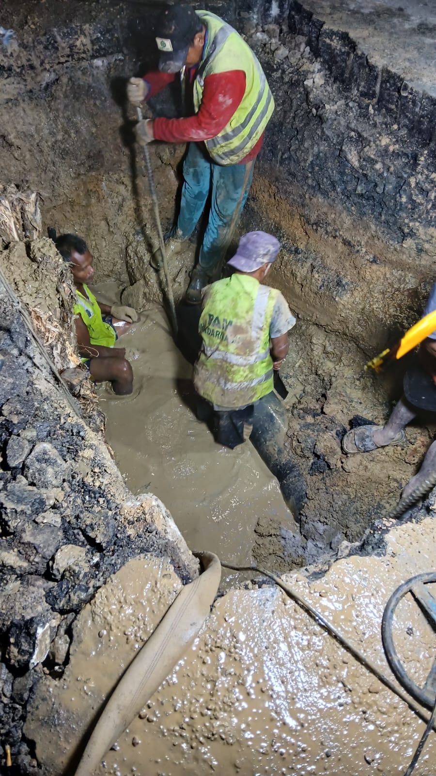 Selanjutnya, tim lapangan akan melakukan pembuangan angin pada pipa distribusi dibeberapa titik lokasi.
